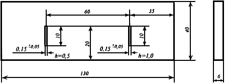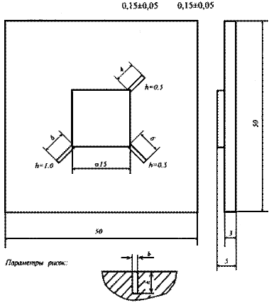 h - глубина риски, мм. Рисунок 3 - Контрольный образец № 3 с рисками в зоне, удаленной от кромок