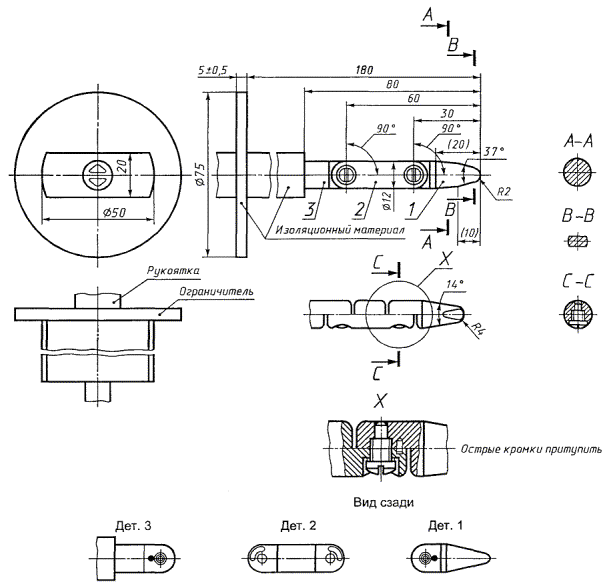 Соответствие проверяют осмотром. 1.7.16 Доступ оператораЕсли необходимо иметь доступ при помощи инструмента в ОБЛАСТИ, ДОСТУПНОЙ ОПЕРАТОРУ, то все остальные места этой области, содержащие опасность, не должны быть доступны ОПЕРАТОРУ при использовании ИНСТРУМЕНТА, или эти места должны иметь надписи, запрещающие доступ ОПЕРАТОРА. Знак маркировки опасности поражения электрическим током 1.7.17 Оборудование для установки в помещениях с ограниченным доступомДля оборудования, предназначенного для установки в помещениях с ограниченным доступом, инструкция по установке должна содержать указания об этом назначении. 2 ЗАЩИТА ОТ ОПАСНОСТИ2.1 Защита от поражения электрическим током и энергетической опасностиПримечание - В Австралии предъявляют дополнительные требования по защите. 2.1.1 Защита в доступных рабочих областяхЗащита от поражения электрическим током от частей, находящихся под напряжением, основывается на принципе, что ОПЕРАТОРУ разрешен доступ к: - открытым (оголенным) частям ЦЕПЕЙ БСНН; - открытым (оголенным) частям ЦЕПЕЙ С ОГРАНИЧЕНИЕМ ТОКА; - ЦЕПЯМ НТС в условиях, устанавливаемых 2.1.1.1. Доступ к другим частям, находящимся под напряжением, и их изоляции ограничивают, как установлено в 2.1.1.1. Дополнительные требования по защите от поражения электрическим током установлены в 2.1.1.5. 2.1.1.1 Доступ к частям, находящимся под напряжением Оборудование должно быть сконструировано таким образом, чтобы в ЗОНЕ ДОСТУПА ОПЕРАТОРА имелась необходимая защита от прикосновения с: - оголенными частями ЦЕПЕЙ СНН; - оголенными частями, находящимися под ОПАСНЫМ НАПРЯЖЕНИЕМ; - ФУНКЦИОНАЛЬНОЙ или ОСНОВНОЙ ИЗОЛЯЦИЕЙ частей или проводов ЦЕПЕЙ СНН, кроме разрешенных в 2.1.1.3; - ФУНКЦИОНАЛЬНОЙ или ОСНОВНОЙ ИЗОЛЯЦИЕЙ частей или проводов, находящихся под ОПАСНЫМ НАПРЯЖЕНИЕМ. Примечание 1 - ФУНКЦИОНАЛЬНАЯ ИЗОЛЯЦИЯ включает в себя такую изоляцию, как лак, эмаль на основе растворителей, обычная бумага, хлопок, окисная пленка, изоляция, способная к перемещениям, например изоляционные бусы или компаунды, не являющиеся самотвердеющей смолой. Данный перечень не является исчерпывающим; - незаземленными проводящими частями, отделенными только ФУНКЦИОНАЛЬНОЙ или ОСНОВНОЙ ИЗОЛЯЦИЕЙ от цепей СНН или цепей, находящихся под ОПАСНЫМ НАПРЯЖЕНИЕМ; - оголенными частями ЦЕПЕЙ НТС, кроме тех, доступ к которым разрешается: контакты разъемов, не доступные для прикосновения испытательным калибром (рисунок 2С); оголенные проводящие части, расположенные в батарейном отсеке, соответствующие 2.1.1.2; оголенные проводящие части цепей НТС-1, имеющие любую точку связанную (в соответствии с 2.6.1е) с клеммой защитного заземления; оголенные проводящие части разъемов в цепях НТС-1, отделенные от доступных незаземленных проводящих частей оборудования в соответствии с 6.2.1. Примечания 2 Типичный пример - оболочка коаксиального разъема. 3 Доступ к цепям НТС-1 и НТС-3 через другие цепи также ограничивается по 6.2.1 в некоторых случаях. Неограниченный доступ разрешается к ЦЕПЯМ С ОГРАНИЧЕНИЕМ ТОКА. Эти требования относятся ко всем положениям подключенного и работающего при нормальных условиях эксплуатации оборудования. Защита должна обеспечиваться изоляцией, ограждением или блокировкой. Соответствие проверяют следующими процедурами: a) обследованием; b) испытательным пальцем (рисунок 2А), который не 