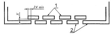 Условие: рассматриваемый путь включает несплошной стык с канавками менее Х мм с каждой стороны. Правило: ЗАЗОРЫ и ПУТИ УТЕЧКИ являются отрезками прямых между частями. Рисунок F.5 - Несплошной стык с узкими канавками