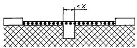 На рисунках F.1 - F.13 ЗАЗОРЫ и ПУТИ УТЕЧКИ обозначены следующим образом. Условие: рассматриваемый путь включает канавку с параллельными или под углом сторонами, любой глубины, шириной менее X мм. Правило: ЗАЗОР и ПУТЬ УТЕЧКИ измеряют непосредственно над канавкой. Рисунок F.1 - Узкая канавка Условные обозначения к рисункам F.1 - F.13 Условие: рассматриваемый путь включает канавку с параллельными сторонами любой глубины, шириной Х мм и более. Правило: ЗАЗОРОМ является отрезок прямой между частями. ПУТЬ УТЕЧКИ определяют по пути огибания контура канавки. Рисунок F.2 - Широкая канавка