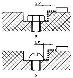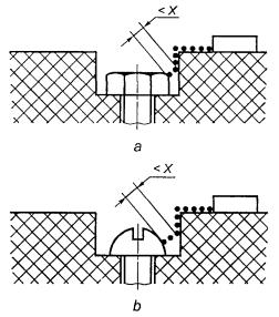 Зазор между головкой винта и стенкой выемки слишком мал, чтобы его учитывать. Рисунок F.8 - Малое углубление