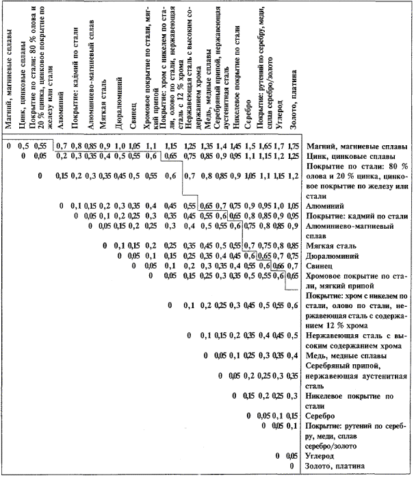 Соответствие проверяют измерением, принимая во внимание приложение F. Применяют следующие условия соответствия. Подвижные части устанавливают в наиболее неблагоприятные положения. При измерении ЗАЗОРОВ в КОЖУХ из изоляционного материала через щель или отверстие в КОЖУХЕ, доступную поверхность рассматривают как проводящую, будто бы покрытую металлической фольгой во всех местах, где можно коснуться испытательным пальцем (см. рисунок 2А, 2.1.1.1), прикладываемым без заметного усилия (см. рисунок F.12, точка В). При измерении ЗАЗОРОВ воздействуют постоянной силой по 4.2.2 - 4.2.4. ПРИЛОЖЕНИЕ Н(обязательное) Ионизирующее излучение(см. 4.3.13) Оборудование, которое может оказаться источником ионизирующего излучения, проверяют измерением значения излучения. Излучение измеряют дозиметром типа ионизационной камеры с эффективной площадью 10 см2 или при помощи оборудования другого типа, дающего эквивалентные результаты. Измерения должны проводиться на испытуемом оборудовании, работающем при наиболее неблагоприятном напряжении питания (см. 1.4.5), а органами управления и обслуживания добиваются максимального излучения при нормальной эксплуатации оборудования. Внутренние органы управления, служащие для предварительной регулировки, не предназначенные для регулировки в течение работы оборудования, не относятся к органам обслуживания. В любой точке, обстоящей на 5 см от поверхности ОБЛАСТИ ДОСТУПА ОПЕРАТОРА, уровень излучения не должен превышать 36 пА/кг или 0,5 мР/ч. Следует учесть уровень фонового излучения. Примечание - Данное значение взято из ICRP 15 [14]. ПРИЛОЖЕНИЕ J(обязательное) Электрохимические потенциалы(см. 2.5.10) Таблица J.1 - Электрохимические потенциалы
