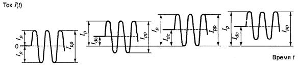 где IP - амплитудное значение тока соответствующей формы сигнала (см. рисунок М.3), мА; IPP - амплитудное значение тока соответствующей формы сигнала (см. рисунок М.3), мА; t1 - время, мс. b) ITS2 - среднее значение тока для повторяющихся звонков модулированного сигнала вызова ,рассчитанного для одного цикла t2 (см. рисунок М.1), не должно превышать 16 мА (действующего значения). ITS2 определяют как