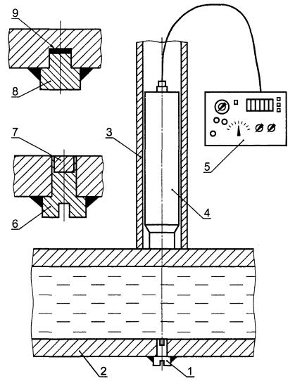 1 - индикатор; 2 - трубопровод; 3 - колодец; 4 - детектор излучения; 5 - радиометр; 6 - болт; 7 - радиоактивная вставка; 8 - пробка; 9 - тонкий радиоактивный слой Рисунок - И.1 ПРИЛОЖЕНИЕ К(рекомендуемое) Схема измерения характеристик локальных повреждений поверхности