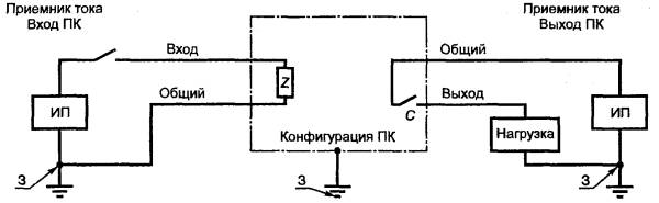 Примечания 1 При любом фазовом угле - процедура испытания согласно 8.3.7.2. 2 Umin является Ue при минимальном допуске согласно таблице 7. 3 Степень жесткости PS1 применяется к конфигурациям ПК, снабженным батареями, степень жесткости PS2 - к конфигурациям ПК, получающим питание за счет выпрямления переменного тока и/или от линий постоянного тока. 5.2.1.3 Непериодические перенапряжения - см. 4.1.2.4. 5.2.2 Резервное электропитание запоминающих устройств Средства резервного электропитания энергозависимых блоков памяти должны обеспечивать сохранение информации по крайней мере 300 ч при рабочих условиях эксплуатации и 1000 ч при температуре не выше 25 °С в случае, если источник энергии номинальной мощности. (Для средств резервирования электропитания, нуждающихся в замене, номинальная мощность - это величина, которую используют для назначения процедуры и временного интервала при их замене.) Замена или обновление средств резервного электропитания должны быть возможны без потери данных в поддерживаемых частях памяти. (См. также 4.3, 5.6.3 и 6.11.) При использовании батарей для резервирования электропитания элементов памяти должна быть предусмотрена предупреждающая информация о снижении напряжения батареи. 5.2.3 Информация, предоставляемая изготовителем В дополнение к требованиям, установленным в разделе 7, изготовитель должен сообщить следующую информацию: 1) данные, позволяющие осуществить выбор подходящей схемы разводки питания для обеспечения указанного напряжения в каждой точке использования электроэнергии, в том числе пиковую мощность, периодический пиковый и установившийся действующий входной ток в условиях полной нагрузки; 2) внешнюю идентификацию оконечных устройств для связи с источниками питания; 3) типичный(е) пример(ы) организации электропитания системы оборудования; 4) специальные требования по монтажу источников электропитания, если таковые имеются, для конфигураций ПК, получающих энергию от резервированных источников или на которые подаются напряжения питания и частоты, не указанные в 5.2.1.1; 5) результаты подсоединения источников электропитания к аппаратуре: - обратной полярностью; - с несоответствующим уровнем напряжения и/или частоты; - несоответствующими проводниками; 6) полную информацию относительно поведения конфигурации ПК для типичных ситуаций увеличения/уменьшения напряжения; 7) данные, позволяющие оценить максимальные значения времени прерывания, которое реально не влияет на нормальное функционирование любой конфигурации ПК; класс ИП (ИП-1 или ИП-2) устройств с питанием на постоянном токе; 8) время копирования содержимого памяти с точки зрения температурных и эксплуатационных требований; 9) рекомендуемый временной интервал при замене источников энергии, если такая замена применяется, и рекомендуемая процедура и последующие результаты воздействия на конфигурацию системы. 5.3 Цифровые входы/выходыНа рисунке 2 представлена схема определения некоторых параметров входа/выхода ПК, применяемых в настоящем стандарте. С - выход; механический или статический контакт (например, сухой контакт реле, тиристор, транзистор и т.п.); З - заземление; необязательно, или определяется национальными правилами и/или нуждами применения; Z - вход, входное полное сопротивление; ИП - внешние источники питания Примечание - Некоторые применения ПК мо