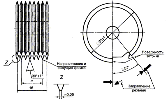 8.3.5.5.7 Испытания защитного покрытия Согласно требованиям 6.3.3.3.1.2. Примечание - Альтернативные испытания находятся на рассмотрении. 1) Испытания должны проводиться на испытуемых печатных платах с параллельными проводниками длиной не менее 100 мм, причем поверхностные расстояния между ними должны соответствовать реальному применению. Для испытуемой печатной платы должны применяться те же защитное покрытие, материал и процедура (технология) изготовления, что и при нормальной технологии изготовления оборудования. 2) Испытания должны быть проведены на трех печатных платах. Порядок испытаний должен быть следующим: а) старение образцов; б) диэлектрические испытания; в) испытания на прилипаемость. 3) Старение образцов Рекомендуемые испытания Са по ГОСТ 28201: - длительность испытания (влажное тепло, постоянно) - 56 сут; - длительность и условия хранения - 28 сут при 110 °С; - критерии пригодности/отказа - заключительные диэлектрические испытания и испытания на прилипаемость должны быть удовлетворительными. 4) Диэлектрические испытания Процедура Выбирают методику испытаний (постоянный ток) и уровни испытательного напряжения в соответствии с требованиями к диэлектрической прочности по 5.10. Испытания проводят на трех печатных платах. Испытательное напряжение должно прикладываться между: а) параллельными проводниками на плате; б) параллельными проводниками и испытательным электродом, который помещен на печатную плату. Критерий пригодности/отказа Отсутствие перекрытия и пробоя изоляции. 5) Испытание на прилипаемость (после поперечного разреза покрытия) Инструмент Режущий инструмент должен быть с несколькими лезвиями, как указано на рисунке 7. Расстояние между двумя лезвиями в зависимости от толщины защитного покрытия должно быть следующим: