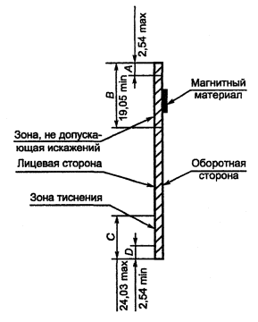 поверхности пластины более чем на 9.2.2 Искажения поверхности (для карт формата ID-1) Как показано на рисунке 3, в зоне В, за исключением зоны А, на лицевой или оборотной стороне карты не должно быть каких-либо искажений поверхности, неровностей или выступающих участков, которые могут нарушить контакт между магнитной головкой и магнитной полосой.