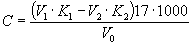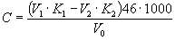 Во все пробирки шкалы стандартов и в пробу прибавляют по 0,5 мл 0,02 %-ного раствора солянокислого диметил-n-фенилендиамина и перемешивают. Через 10-15 мин сравнивают окраску всех проб со шкалой стандартов. Б.5.12.4 Обработка результатов Концентрацию озона С, мг/м3, вычисляют по формуле