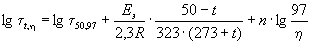 где τt,η - продолжительность испытаний при требуемых испытательной температуре и испытательной влажности; τ50,97 - продолжительность испытаний, определенная по номограмме, для испытательной температуры 50 °С и испытательной влажности 97 %; Еэ - эффективная энергия активации процесса возникновения отказа, кал/(моль · °С); R - универсальная газовая постоянная, равная 1,987 кал/(моль · °С); t - испытательная температура, °С, отличная от 50 °С; η - испытательная влажность, %, отличная от 97 %. При расчетах принимают Еэ = 10000 кал/(моль · °С), п = 2, если для конкретного изделия, системы материалов или материала при предварительных испытаниях по методике ГОСТ Р 51372 не определены другие значения. Порядок определения продолжительности испытания изделия с помощью номограммы: Задано: Сэ = 5 мг/м3, ηэ = 80 %, tэ = 27 °C, τэ = 25 лет. Агрессивная среда NO2. Испытания проводят при концентрации NO2 Си = 500 мг/м3. Продолжительность испытаний определяют в последовательности, указанной ниже (на номограмме последовательность указана стрелками): через деление с пометкой 5 на шкале Сэ проводят вертикаль до пересечения с наклонной прямой с пометкой Си = 500 (точка 1); из точки 1 проводят горизонталь до пересечения с линией 1,02 (NO2) (точка 2); из точки 2 проводят вертикаль до пересечения с направляющей прямой второго квадранта (точка 3); из точки 3 проводят горизонталь до наклонной линии с пометкой τэ = 25 лет (точка 4); из точки 4 проводят вертикаль до пересечения с направляющей прямой третьего квадранта (точка 5); из точки 5 проводят горизонталь. На правой вертикальной шкале третьего квадранта получают продолжительность испытаний τи при форсировании только концентрацией. Полученное значение τи = 68 сут, то есть можно проводить испытания в режиме tи = tэ = 27 °С, ηи = ηэ = 80 %, Си = 500 мг/м3 в течение 68 сут. Однако этот режим довольно продолжительный и его можно сократить, проводя испытания при tи = (50 ± 2) °С, ηи = (98 ± 2) %. По номограмме определяют продолжительность испытания τи, для этого: горизонталь, проведенную из точки 5, продолжают до линии с пометкой τэ = 80 (точка 6); из точки 6 проводят вертикаль до пересечения с направляющей прямой четвертого квадранта (точка 7); из точки 7 проводят горизонталь до линии с пометкой tэ = 27 °С (точка 8); из точки 8 проводят вертикаль до пересечения с направляющей прямой пятого квадранта (точка 9); из точки 9 проводят горизонталь до пересечения с вертикальной шкалой пятого квадранта, по которой определяют значение τи. В данном случае продолжительность испытаний в режиме tи = (50 ± 2) °С, ηи = (98 ± 2) %, Си = 500 мг/м3 составляет τи = 12 сут. Все представленные на номограмме шкалы являются неравномерными. Для определения испытательного режима, соответствующего промежуточным значениям переменных, необходимо построение прямых, отвечающих заданным промежуточным значениям. Рисунок В.1 - Номограмма ПРИЛОЖЕНИЕ Г(справочное) Степень соответствия настоящего стандарта международным стандартамГ.1 Настоящий стандарт устанавливает методы ускоренных испытаний технических изделий на стойкость к воздействию специальных сред и коррозионно-активных агентов атмосферы, увязывая методы (режимы) испытаний с условиями и сроками эксплуатации изделий и охватывая всю совокупность технических изделий и специальных сред. МЭК 60068-2-43 устанавливает только сравнительные испытания для ускоренного определения коррозионного