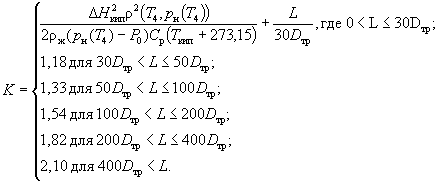 K - функция, зависящая от длины участка трубопровода L от входа до места разгерметизации: