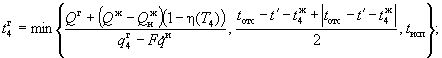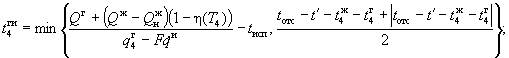 q'4 = qвыб(1 - η(T4)); (48) q"4 = min{q'4, qвыб - q'4}; (49)