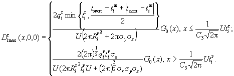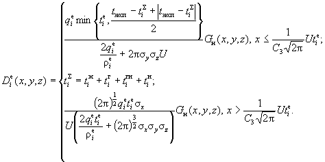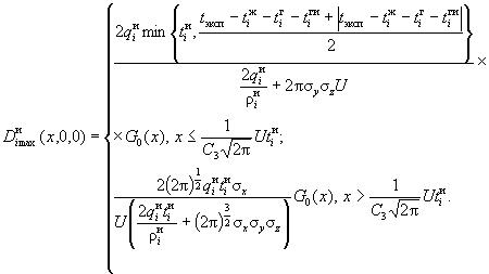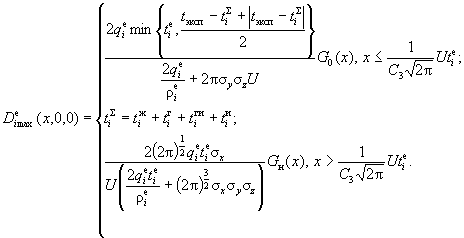 Максимальная токсодоза на поверхности земли при прохождении этого облака наблюдается на оси y = 0, z = 0 и определяется по формуле