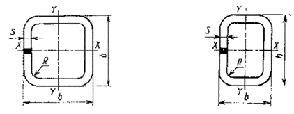 Черт. 1 Черт. 2 h - высота профиля; b - ширина профиля; S - толщина профиля; R - радиус кривизны; W - момент сопротивления; I - момент инерции; i - радиус инерции; Sx.y - статический момент полусечения; F - площадь поперечного сечения Таблица 1
