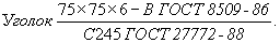 Прокат угловой равнополочный, обычной точности прокатки (В), размерами 75´75´6 мм по ГОСТ 8509-86, из стали С245 по ГОСТ 27772-88.