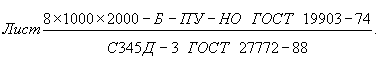 Прокат листовой размерами 8´1000´2000 мм, нормальной точности (Б), улучшенной плоскостности (ПУ), с необрезной кромкой (НО), по ГОСТ 19903-74, из стали С345 с повышенным содержанием меди (Д), категории 3 по ГОСТ 27772-88.