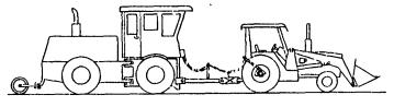 6. ПОДГОТОВКА К ИСПЫТАНИЯМ6.1. Следует измерять мощность двигателя и (или) отрегулировать его в соответствии с документацией изготовителя с помощью динамометра, устанавливаемого на двигателе или на механизме отбора мощности. 6.2. До начала испытаний следует убедиться, что: а) все механические регулировки машины соответствуют указаниям изготовителя (проверить частоту вращения двигателя, тормоза, муфты и т.д.); б) марки горюче-смазочных материалов и охлаждающих жидкостей соответствуют указаниям изготовителя. 6.3. Машину загружают, балластируют и (или) оснащают рабочим оборудованием в соответствии с требованиями условий испытаний. 6.4. Регулируют давление в шинах в соответствии с указаниями изготовителя (п. 6.8). 6.5. Машину взвешивают для определения общей массы и распределения массы между ведущими колесами (оператор находится на рабочем месте, топливный бак полностью заправлен). 6.6. Машину соединяют с динамометрической тележкой, устанавливают все необходимые измерительные приборы. Высота точки прицепа должна соответствовать рекомендациям изготовителя. Сцепное устройство тележки регулируют таким образом, чтобы линия действия тягового усилия была горизонтальна. Если машину используют в качестве тягача, то тележку следует крепить к сцепному устройству. К машинам, к таким как автогрейдер или скрепер, нагрузку прикладывают на высоте не более 100 мм над уровнем площадки. 6.7. Следует проверять работоспособность испытательного оборудования. Внимание! Не снижайте давление в шинах ниже нижнего предела для фактической нагрузки на каждую шину в соответствии с указаниями изготовителя. Износ протектора шин или грунтозацепов гусениц не должен превышать 50 % высоты нового грунтозацепа или глубины рисунка нового протектора. 6.9. Натяжение гусениц следует отрегулировать в соответствии с документацией изготовителя. 6.10. Определяют число оборотов ведущих колес или звездочек при свободном качении, т.е. при движении без тяговой нагрузки по измеряемому участку; для этого машина проходит по измеряемому участку длиной не менее 50 м своим ходом на низшей передаче трансмиссии, при работе двигателя с низкой частотой вращения коленчатого вала, без корректировки курса с помощью рулевого управления. Определяют число оборотов при свободном качении. 6.11. Основные характеристики машины вносят в протокол по форме, приведенной в табл. 2. 7. ПРОВЕДЕНИЕ ИСПЫТАНИЙ7.1. Перед началом регистрации экспериментальных данных машину прогревают пробегом, пока жидкости в системах двигателя и трансмиссии не достигнут рабочих температур. При выполнении испытательных заездов органы управления двигателем устанавливают в положение, соответствующее максимальной мощности. 7.2. Машина проходит измеряемый участок на определенной передаче трансмиссии (или при определенном передаточном отношении бесступенчато регулируемой трансмиссии) под нагрузкой, позволяющей поддерживать среднее значение частоты вращения двигателя, ведущих колес или звездочек на заданном уровне для каждого отдельного заезда; при этом регистрируют: а) тяговое усилие; б) время; в) путь; г) частоту вращения двигателя; д) частоту вращения выходного вала бесступенчато регулируемой трансмиссии; е) число оборотов ведущих колес. В качестве альтернативного метода допускается регулировать тяговое усилие, поддержи