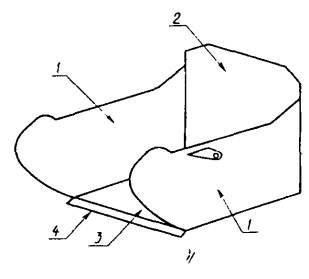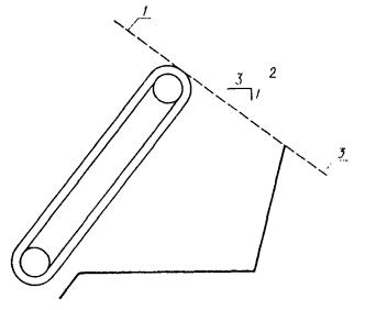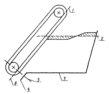 1 - боковая стенка; 2 - выдвижная задняя стенка; 3 - днище; 4 - нож Черт. 2 Границы геометрического объема Плоскости, относящиеся к натяжной звездочке и скребкам элеватора 1 - см. п. 4.2д; 2 - средняя линия, см. п. 4.2е; 3 - днище; 4 - нож; 5 - см. п. 4.2г; 6 - см. п. 4.2д Черт. 3 Границы объема «шапки» ковша. Касательная плоскость 1 - см. п. 4.3в; 2 - не менее 3:1, см. п. 4.3в и 4.3г; 3 - см. п. 4.3в Черт. 4 Границы объема «шапки»