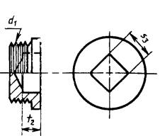 Дата введения 01.01.89 1. НАЗНАЧЕНИЕСтандарт устанавливает типы пробок и присоединительные размеры под ручной инструмент по ИСО 4510/1 с целью обеспечения легкости снятия и установки пробок в эксплуатационных условиях. Стандарт не содержит требований к материалам и другим размерам, необходимым для изготовления пробок. 2. ОБЛАСТЬ ПРИМЕНЕНИЯНастоящий стандарт распространяется на спускные, наливные и контрольные пробки, применяемые при замене охлаждающих жидкостей, горюче-смазочных материалов и рабочих жидкостей в гидросистемах землеройных машин. 3. ССЫЛКИСсылочные документы приведены в приложении. 4. ТИПЫ И ОСНОВНЫЕ ПАРАМЕТРЫТип А Пробки без головки с квадратным углублением под ключ
