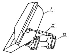 1 - ковш; 15 - гидроцилиндр боковой разгрузкой; 16 - рама ковша с люлькой 6.3.2. Двухчелюстной ковш