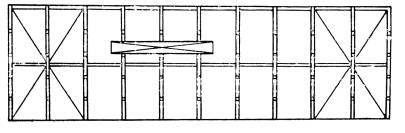 В задней плоскости с определенным шагом по длине стеллажа устанавливаются раскосы или предварительно напрягаемые растяжки. В соответствующих панелях верхней плоскости стеллажа также устанавливаются раскосы.