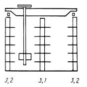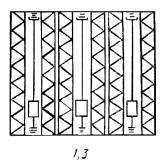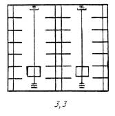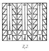 для стеллажей исполнений 3.3 и 3.4 при числе проходов три и более состояние крайних стеллажей соответствует предыдущему, а среди остальных - z1, нагруженных односторонне, прочие же нагружены полностью; здесь z1=0,25 (z+2); z - количество проходов.