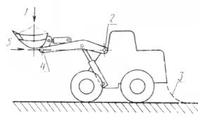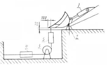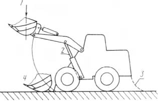 Дата введения 01.01.92 1. НАЗНАЧЕНИЕНастоящий стандарт устанавливает методы определения усилий на рабочих органах и опрокидывающих нагрузок погрузчиков, а также лимитирующие их факторы. Он распространяется на колесные и гусеничные погрузчики по ГОСТ 28764 и по ГОСТ 27721. 2. ССЫЛКИСсылочные документы приведены в приложении. 3. ТЕРМИНЫ И ОПРЕДЕЛЕНИЯВ настоящем стандарте применяются следующие термины и определения: 3.1. Усилия на рабочих органах 3.1.1. Вырывное усилие - максимальное установившееся, направленное вверх усилие, возникающее в точке, находящейся на расстоянии 100 мм позади режущей кромки ковша, при действии гидроцилиндров перемещения стрелы или гидроцилиндров поворота ковша и при расположении нижней поверхности режущей кромки параллельно опорной плоскости GRP на высоте 20 мм над нею. Для ковшей с прямолинейной, криволинейной или треугольной режущей кромкой вышеуказанное расстояние 100 мм следует измерять от середины режущей кромки. 3.1.2. Подъемное усилие - максимальный груз, который может быть поднят в запрокинутом ковше от уровня опорной поверхности на полную высоту при помощи гидроцилиндров перемещения стрелы при расположении центра тяжести нагрузки на одной вертикали с геометрическим центром тяжести номинального объема ковша ГОСТ 17257. 3.2. Опрокидывающая нагрузка на максимальном вылете или на определенной высоте - минимальная нагрузка, центр тяжести которой расположен на одной вертикали с геометрическим центром тяжести номинального объема ковша, приводящая машину в состояния, предельные для опрокидывания груза (см. пп. 3.5.3 и 7.1): Ограничение по опрокидыванию 1 - на определенной высоте; 2 - нагрузка; 3 - на максимальном вылете Черт. 1 а) для гусеничных погрузчиков при жесткой подвеске рамы ходовой части опрокидывающую нагрузку определяют при отрыве передних опорных катков от гусеничной ленты (см. черт. 1). При других видах подвески метод определения опрокидывающей нагрузки может быть установлен изготовителем и указан в отчете; б) для колесных погрузчиков опрокидывающую нагрузку определяют при отрыве, по крайней мере, одного из задних колес от опорной поверхности. В этом предельном состоянии машины достигается равновесие между опрокидывающим моментом, создаваемым опрокидывающей нагрузкой, и восстанавливающим моментом, создаваемым массой машины. 3.3. Масса - эксплуатационная масса машины по ГОСТ 27922. 3.4. Давление рабочей жидкости 3.4.1. Рабочее давление в контуре - номинальное давление, создаваемое в конкретном гидроконтуре насосом (насосами). 3.4.2. Давление удерживания в контуре - максимальное статическое давление в конкретном гидроконтуре, ограниченное предохранительным клапаном при расходе не свыше 10 % номинального расхода для данного контура. 3.5. Лимитирующие факторы (см. также п. 7.1). 3.5.1. Ограничение по возможностям гидросистемы - случай, когда усилия на рабочем органе или подъемное усилие лимитируется рабочим давлением или давлением удерживания в контуре. 3.5.2. Ограничение по возможностям двигателя - при усилиях на рабочем органе лимитирующими остановку двигателя. 3.5.3. Ограничение по опрокидыванию - при усилии на рабочем органе лимитирующими начало опрокидывания машины. 4. ПРИБОРЫ И ОБОРУДОВАНИЕ ДЛЯ ИСПЫТАНИЙОборудование для испытаний должно включать устройства, перечисленные в пп. 4.1 - 4.4. 4.1. Динамометр или измерительный п