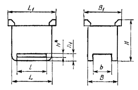 Пример условного обозначения металлической тары типа 3, исполнения 1 с L = 400 мм, В = 300 мм, H = 160 мм, массой брутто 0,05 т: Тара 3 - 1 - 40 - 30 - 16 - 0,05M ГОСТ 14861-91 7. Основные параметры и размеры тары типа 3, исполнения 2 должны соответствовать указанным на черт. 5 и в табл. 6. Черт. 5 Таблица 6 Размеры, мм