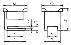 Пример условного обозначения металлической тары типа 1, исполнения 5 с L = 300 мм, В = 200 мм, H = 160 мм, массой брутто 0,01 т: Тара 1 - 5 - 30 - 20 - 16 - 0,01М ГОСТ 14861-91 5. Основные параметры и размеры тары типа 2, исполнений 1-4 должны соответствовать указанным на черт. 3 и в табл. 4. ___________ * Размер в свету может быть на длинной или короткой стороне. Черт. 3 Таблица 4 Размеры, мм