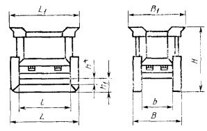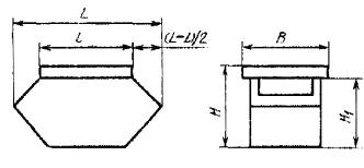 Пример условного обозначения металлической тары типа 1, исполнения 1 с L = 1200 мм, B = 800 мм, H = 850 мм, массой брутто 2,00 т: Тара 1 - 1 - 120 - 80 - 85 - 2,00М ГОСТ 14861-91 То же, для комбинированной тары Тара 1 - 1 - 120 - 80 - 85 - 2,00К ГОСТ 14861-91 4. Основные параметры и размеры тары типа 1, исполнений 5, 6 должны соответствовать указанным на черт. 2 и в табл. 3. Черт. 2 Таблица 3 Размеры, мм