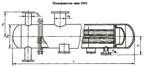 Дата введения 01.01.92 Настоящий стандарт распространяется на горизонтальные пароводяные подогреватели с плавающей головкой для систем теплопотребления (далее - подогреватели) климатических исполнений У3, У4, ТВ4 и ТС4 по ГОСТ 15150, изготавливаемые для нужд народного хозяйства и экспорта. Требования настоящего стандарта являются обязательными. 1. ТИПЫ, ОСНОВНЫЕ ПАРАМЕТРЫ И РАЗМЕРЫ1.1. Подогреватели изготавливают следующих типов: ПП1 - с эллиптическими днищами; ПП2 - с плоскими днищами. 1.2. Основные параметры рабочих сред подогревателей должны соответствовать приведенным в табл. 1. Таблица 1