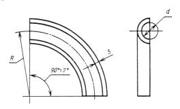 Пример условного обозначения сегмента марки 100, внутренним диаметром 633 мм, толщиной 60 мм и длиной 1000 мм: Сегмент 1/4 100–633´60´1000 ГОСТ 22546-77 1.2.5. Форма и размеры отводов должны соответствовать указанным на черт. 5 и в табл.5.