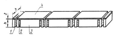 жесткостью, соответствующей Сущность метода заключается в определении разрушающей нагрузки, приходящейся на единицу ширины образца, с которого происходит отрыв покрытия при неравномерном распределении напряжений по площади склеивания. Стандарт не распространяется на детали и изделия из древесины и древесных материалов, пласти которых облицованы однослойными пленками на основе бумаг, пропитанных синтетическими смолами. 1. ОТБОР ОБРАЗЦОВ И ПОДГОТОВКА К ИСПЫТАНИЮ1.1. Заготовки для образцов изготовляют специально или выпиливают из изделий или деталей, до нанесения лакокрасочного покрытия, в виде прямоугольных брусков длиной, кратной длине образца с припусками на распиловку (черт. 1). 1.2. Заготовки для образцов изготовляют по технологии, установленной для конкретного вида продукции. 1 - пропил; 2 - пропил для образования свеса; 3 - основание образца; 4 - облицовочный материал Черт. 1 1.3. Заготовки для образцов, в которых облицовочный материал наклеивают на основу из древесины хвойных пород, изготовляют или выбирают из деталей или изделий так, чтобы облицовочный материал находился на радиальной или радиально-тангенциальной поверхности основы. 1.4. Заготовку для образцов распиливают на образцы пилой типа 3 по ГОСТ 9769-79. Пропилы для образования свесов облицовочного материала не доводят до облицовки на 0,1 - 0,2 мм. Окончательную доводку пропила до облицовочного материала и очистку свеса выполняют вручную шлицовкой толщиной 0,8 мм и шириной 16 мм по ГОСТ 6645-68. (Измененная редакция, Изм. № 1). 1 - облицовочный материал; 2 - клеевой слой; 3 - основание образца; 4 - линия для установки пуансона Черт. 2 1.5. Из деталей или изделий, облицованных шпоном, заготовки для образцов выпиливают так, чтобы направление волокон шпона совпадало с длиной заготовки. При применении в качестве облицовочного материала фанеры это требование относится к шпону, непосредственно прилегающему к клеевому шву. 1.6. Форма и размеры образца для испытания должны соответствовать указанным на черт. 2. Толщина основания h должна быть равна толщине детали или изделия из древесины и древесных материалов (но не менее 10 мм). При определении прочности приклеивания облицовочного материала к кромке детали или изделия ширина образца должна быть равна ее толщине. 1.7. Образцы для испытания, основой в которых являются столярная и фанерная плиты, склеивают или выбирают так, чтобы направление волокон облицовочного материала совпадало с направлением волокон верхнего листа шпона основы. 1.8. Торцовые поверхности образца должны быть параллельны друг другу и перпендикулярны боковым кромкам. 1.9. Поверхность облицовочного материала не должна иметь раковин, сколов, запилов и других видимых дефектов. 1.10. Количество образцов должно устанавливаться нормативно-технической документацией на конкретный вид продукции, но должно быть не менее 16. 1.11. Испытания проводят сразу после окончания технологической выдержки образцов или после хранения их при температуре 18±5 °С и относительной влажности воздуха 65±10 %. 1.12. Перед испытанием