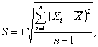 где Xi - значение испытываемого свойства; п - количество образцов; выборочное среднее квадратическое отклонение (S) по формуле