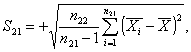 выборочное среднее квадратическое отклонение (S21) между единицами первой стадии отбора по формуле