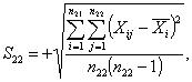 выборочное среднее квадратическое отклонение (S22) внутри единиц первой стадии отбора по формуле