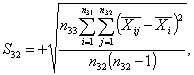 выборочное среднее квадратическое отклонение (S32) между единицами второй стадии отбора по формуле