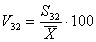 выборочный коэффициент вариации (V32) в процентах между единицами второй стадии отбора по формуле