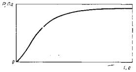 где K - тарировочный коэффициент рычага, Н/мкм; f - прогиб рычага, мкм; a и a1 - ширина образцов в радиальном направлении при тангентальном разбухании и в тангентальном направлении при радиальном разбухании, см; b и b1 - толщина образцов вдоль волокон, см. 4.2. График зависимости давления набухания от времени выдержки образцов в воде (черт. 2) строят в координатах: давление, Па - время, с. Допускается откладывать по оси ординат прогиб рычага в микрометрах.
