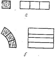 На каждую выпиленную доску наносят маркировку, содержащую обозначение кряжа и порядковый номер части кряжа, в последовательности по часовой стрелке на комлевом торце. 1.4. Доски и заготовки, отобранные по п. 1.1, распиливают на отрезки длиной не менее 0,5 м и не более 1 м. У отрезков прострагивают отрезки длиной не менее 0,5 м и не более 1 м. У отрезков прострагивают тангентальную пласть параллельно преобладающему направлению древесных волокон на радиальной поверхности. Отрезки, а также доски, выпиленные по п. 1.3, распиливают, начиная от простроганной пласти, на бруски, толщина которых должна быть больше размера (в радиальном направлении) изготовляемых образцов на 5 мм. Бруски, содержащие пороки древесины, бракуют. 1.5. Бруски до влажности 12 ± 3 % выдерживают по ГОСТ 16483.0-78. Допускается смежные бруски подвергать воздействию изучаемого режима технологической обработки до разделки на образцы. 1.6. Из каждого бруска изготовляют требуемые образцы, форма и размеры которых указаны в стандартах на методы испытания древесины (ГОСТ 16483.1-84, 16483.3-84 - ГОСТ 16483.5-73, ГОСТ 16483.35-80 - 16483.38-80, ГОСТ 16483.9-73, ГОСТ 16483.10-73). На образцы наносят маркировку, содержащую обозначение бруска и порядковый номер образца, начиная с комлевого. Образцы для определения предела прочности на сжатие вдоль волокон (ГОСТ 16483.10-73) допускается изготовлять из отобранных образцов для испытания на статический изгиб по ГОСТ 16483.3-84. Точность изготовления образцов должна соответствовать требованиям ГОСТ 16483.0-78. 2. ОТБОР ОБРАЗЦОВ2.1. Отбор смежных образцов. 2.1.1. Метод является основным и предназначен для отбора образцов при определении показателей физических н механических свойств древесины после технологической обработки. Метод заключается в подборе группы образцов, изготовленных из одной зоны годичных слоев древесины. 2.1.2. Количество образцов в группе должно быть больше числа изучаемых режимов исследуемого технологического процесса на две-три единицы. Образцы отбирают из выпиленных один за другим вдоль волокон (черт. 2а) и по годичным слоям (черт. 2б).