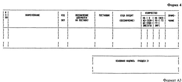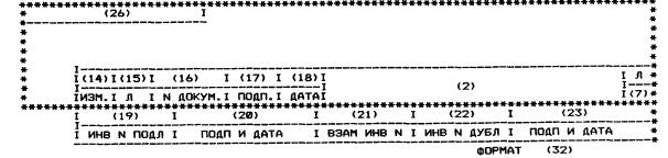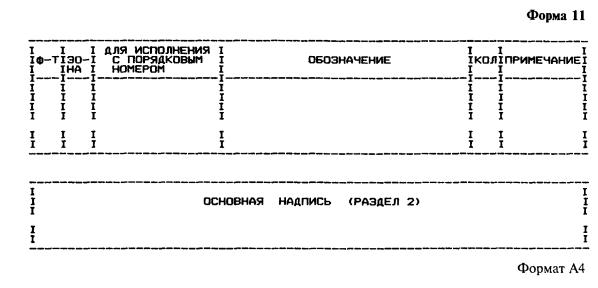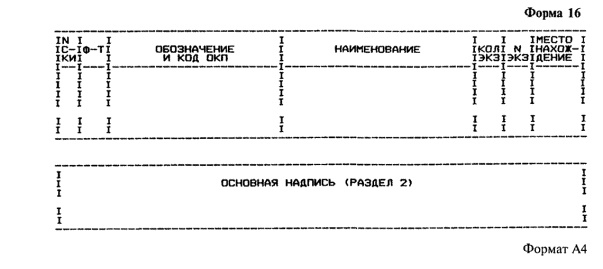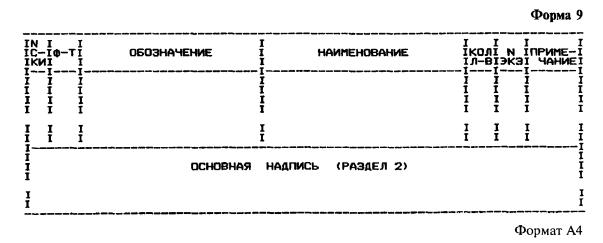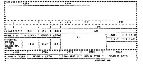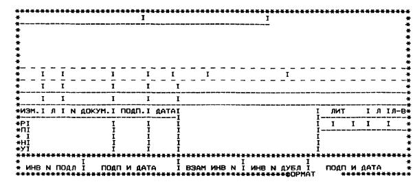 ±20 °С= +-20 °С = +- 20 ЦЕЛ 200 2. Сложные формулы и записи допускается выполнять текстом, например «Iо·rh ³ tвх» = «Произведение нулевого тока на сопротивление нагрузки должно быть больше или равно постоянной времени входа». 1.10. При выполнении сносок, записи справочных размеров в технические требования и т.п. допускается знак «звездочка» («*»)* записывать в одну строку с текстом, обозначением, например: * Размеры для справок; * Подбирают при регулировании; R1*. _______________ * При этом во всех случаях знак «типографская звездочка» («*») тождественна знаку «звездочка» («*») АЦПУ. 1.11. Текстовые документы следует выполнять на одной стороне бумажной ленты через два или один интервал. Примечание. Допускается выполнять перенос слов без соблюдения грамматических правил. Примечания: 1. Обозначение физических величин - по ГОСТ 8.430 или ГОСТ 8.417. 2. При неоднозначности понимания строчную букву заменяют прописной, помещенной между знаками «вертикальная черта», «наклонная черта» или «апостроф», например еКО = |Е| КО = /Е/КО = 'E'KO. 3. Надписи, наносимые непосредственно на изделие, а также появляющиеся на экранах индикаторов изделия, следует выделять знаком «звездочка», например *ВКЛ*, *ОТКЛ*. 1.13. При выполнении текстовых документов, разбитых на графы, допускается: не печатать линии строк, обрамляющие линии, а также линии между графами, при этом необходимо соблюдать интервал не менее одного разряда печати между текстами соседних граф; изменять размеры граф по ширине и высоте, за исключением граф, предусматривающих внесение информации в виде кодов, размеры которых должны быть на один знак больше числа знаков кода, при этом при необходимости допускается увеличивать установленный соответствующим стандартом формат документа. 1.14. Наименование части, раздела и подраздела следует печатать в виде заголовка, симметричного тексту. При этом заголовок раздела и подраздела должен быть отделен от текста интервалом в одну - две строки. Заголовок допускается не подчеркивать. 2. ОБЩИЕ ТРЕБОВАНИЯ К ФОРМАМ ДОКУМЕНТОВ2.1. Содержание форм конструкторских и технологических документов должно отвечать требованиям соответствующих стандартов. Примеры оформления документов приведены: в приложении 2 - конструкторских; в приложении 3 - технологических. Примечания: 1. При внесении изменений в документы заменой листов допускается исключать графу «№ С-КИ» в формах приложения 2. 2. Графу «Зона» формы 5 («Спецификация») приложения 2 допускается исключать и за счет нее увеличить размер граф «Наименование» и (или) «Обозначение», если сборочный чертеж (схема) не разбит(а) на зоны. 2.2. Основная надпись документов должна соответствовать требованиям ГОСТ 2.104, ГОСТ 21.101, ГОСТ 3.1103 и настоящего стандарта. Примечания: 1. Высота основной надписи документов, получаемых на АЦПУ, определяется типом печатающего устройства. 2. Ширину основной надписи документов, получаемых на АЦПУ, допускается увеличивать или уменьшать за счет изменения размеров граф (граф 11, 16 и (или) 1, 2, 28, 30 - для конструкторских документов, а также граф 3 и 26 - для чертежей и схем). 3. Для конструкторских (технологических) документов при расположении дополнительных граф 19 - 23 (блока дополнительной информации Б4) под основной надписью ширину граф следует увеличивать или уменьшать так, чтобы их суммарная ширина совпадала с шириной основной надписи. 4. При вып
