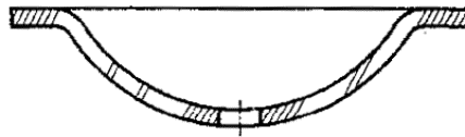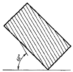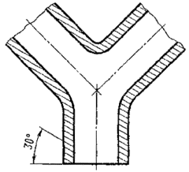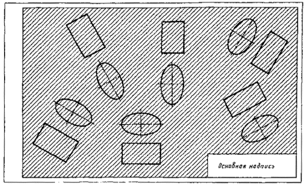 Примечания: 1. (Исключено, Изм. № 1). 2. Для уточнения разновидности материала, в частности, материалов с однотипным обозначением, графическое обозначение следует сопровождать поясняющей надписью на поле чертежа. 3. В специальных строительных конструктивных чертежах для армирования железобетонных конструкций должны применяться обозначения по ГОСТ 21.501. 4. Обозначение материала на виде (фасаде) допускается наносить не полностью, а только небольшими участками по контуру или пятнами внутри контура. 5. Наклонные параллельные линии штриховки должны проводиться под углом 45° к линии контура изображения (черт. 2a) или к его оси (черт. 2б), или к линиям рамки чертежа (черт. 2). Черт. 2а Черт. 2б Если линии штриховки, приведенные к линиям рамки чертежа под углом 45°, совпадают по направлению с линиями контура или осевыми линиями, то вместо угла 45° следует брать угол 30° или 60° (черт. 3 и 4). Черт. 2 Черт. 3 Черт. 4 Линии штриховки должны наноситься с наклоном влево или вправо, но как правило, в одну и ту же сторону на всех сечениях, относящихся к одной и той же детали, независимо от количества листов, на которых эти сечения расположены. (Измененная редакция, Изм. № 1). 6. Расстояние между параллельными прямыми линиями штриховки (частота) должно быть, как правило, одинаковым для всех выполняемых в одном и том же масштабе сечений данной детали и выбирается в зависимости от площади штриховки и необходимости разнообразить штриховку смежных сечений. Указанное расстояние должно быть от 1 до 10 мм в зависимости от площади штриховки и необходимости разнообразить штриховку смежных сечений. (Измененная редакция, Изм. № 2). 7. Узкие и длинные площади сечений (например, штампованных, вальцованных и других подобных деталей), ширина которых на чертеже от 2 до 4 мм, допускается штриховать полностью только на концах и у контуров отверстий, а остальную площадь сечения - небольшими участками в нескольких местах (черт. 5 и 6). Линии штриховки стекла (черт. 7) следует наносить с наклоном 15-20° к линии большей стороны контура сечения. Черт. 5 Черт. 6 Черт. 7 (Измененная редакция, Изм. № 4) 8. Узкие площади сечений, ширина которых на чертеже менее 2 мм, допускается показывать зачерненными с оставлением просветов между смежными сечениями не менее 0,8 мм (черт. 8, 9). В строительных чертежах допускается на сечениях незначительной площади любой материал обозначать как металл или вообще не применять обозначение, сделав поясняющую надпись на поле чертежа. Черт. 8 Черт. 9 9. Обозначение, указанное в п. 3 табл. 1, и обозначение засыпки в сечении выполняют от руки. (Измененная редакция, Изм. № 1). 10. Для смежных сечений двух деталей следует брать наклон линий штриховки для одного сечения вправо, для другого - влево (встречная штриховка). При штриховке «в клетку» для смежных сечений двух деталей расстояние между линиями штриховки в каждом сечении должно быть разным. В смежных сечениях со штриховкой одинакового наклона и направления следует изменять расстояние между линиями штриховки (черт. 10) или сдвигать эти линии в одном сечении по отношению к другому, не изменяя угла их наклона (черт. 11). Черт. 10 Черт. 11 11. При больших площадях сечений, а также при указании профиля грунта допускается наносить обозначение лишь у контура сечения узкой полоской равномерной ширины (черт. 12). (Измененная редакция, Изм. № 1). Черт. 12 ИНФОРМАЦИО