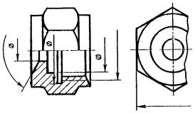 2.50. Одинаковые элементы, расположенные в разных частях изделия (например, отверстия), рассматривают как один элемент, если между ними нет промежутка (черт. 62а) или если эти элементы соединены тонкими сплошными линиями (черт. 62б). При отсутствии этих условий указывают полное количество элементов (черт. 62в). Черт. 62 2.51. Если одинаковые элементы изделия (например, отверстия) расположены на разных поверхностях и показаны на разных изображениях, то количество этих элементов записывают отдельно для каждой поверхности (черт. 63). Черт. 63 Допускается повторять размеры одинаковых элементов изделия или их групп (в том числе отверстии), лежащих на одной поверхности, только в том случае, когда они значительно удалены друг от друга и не увязаны между собой размерами (черт. 64 и 65). Черт. 64 Черт. 65 2.49-2.51. (Измененная редакция, Изм. № 2). 2.52. Если на чертеже показано несколько групп близких по размерам отверстий, то рекомендуется отмечать одинаковые отверстия одним из условных знаков, приведенных на черт. 66. Допускается применять и другие условные знаки. Черт. 66 Отверстия обозначают условными знаками на том изображении, на котором указаны размеры, определяющие положение этих отверстий. На строительных чертежах допускается одинаковые группы отверстий обводить сплошной тонкой линией с поясняющей надписью. 2.53 При обозначении одинаковых отверстий условными знаками количество отверстий и их размеры допускается указывать в таблице (черт. 67). Черт. 67 (Измененная редакция, Изм. № 2). 2.54. При изображении детали в одной проекции размер ее толщины или длины наносят, как показано на черт. 68. Черт. 68 2.55. Размеры детали или отверстия прямоугольного сечения могут быть указаны на полке линии-выноски размерами сторон через знак умножения. При этом на первом месте должен быть указан размер той стороны прямоугольника, от которой проводится линия-выноска (черт. 68а). Черт. 68а (Измененная редакция, Изм. № 2). 3. НАНЕСЕНИЕ ПРЕДЕЛЬНЫХ ОТКЛОНЕНИЙ РАЗМЕРОВОбщая запись о предельных