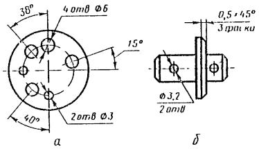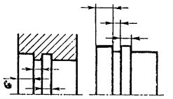 Черт. 54 Черт. 55 2.46. Размеры двух симметрично расположенных элементов изделия (кроме отверстий) наносят один раз без указания их количества, группируя, как правило, в одном месте все размеры (черт. 56 и 57). Черт. 56 ___________ * Размеры для справок. Черт. 57 Количество одинаковых отверстий всегда указывают полностью, а их размеры - только один раз. (Измененная редакция, Изм. № 2). 2.47. При нанесении размеров, определяющих расстояние между равномерно расположенными одинаковыми элементами изделия (например, отверстиями), рекомендуется вместо размерных цепей наносить размер между соседними элементами и размер между крайними элементами в виде произведения количества промежутков между элементами на размер промежутка (черт. 58). Черт. 58 2.47а. Допускается не наносить на чертеже размеры радиуса дуги окружности сопрягающихся параллельных линий (черт. 58а). Черт. 58 a (Введен дополнительно, Изм. № 2). 2.48. При большом количестве размеров, нанесенных от общей базы, допускается наносить линейные и угловые размеры, как показано на черт. 59 и 60, при этом проводят общую размерную линию от отметки «0» и размерные числа наносят в направлении выносных линий у их концов. Черт. 59 Черт. 60 2.48а. Размеры диаметров цилиндрического изделия сложной конфигурации допускается наносить, как показано на черт. 60а. Черт. 60а (Введен дополнительно, Изм. № 2). 2.49. При большом количестве однотипных элементов изделия, неравномерно расположенных на поверхности, допускается указывать их размеры в сводной таблице, при этом применяется координатный способ нанесения отверстий с обозначением их арабскими цифрами (черт. 61), или обозначение однотипных элементов прописными буквами (черт. 61а). Черт. 61 Черт. 61a