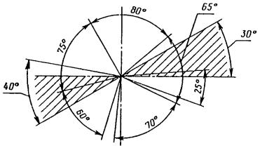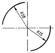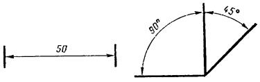 Черт. 10а (Введен дополнительно, Изм. № 2). 2. НАНЕСЕНИЕ РАЗМЕРОВ2.1. Размеры на чертежах указывают размерными числами и размерными линиями. 2.2. При нанесении размера прямолинейного отрезка размерную линию проводят параллельно этому отрезку, а выносные линии - перпендикулярно размерным (черт. 11). Черт. 11 2.3. При нанесении размера угла размерную линию проводят в виде дуги с центром в его вершине, а выносные линии - радиально (черт. 12). Черт. 12 2.4. При нанесении размера дуги окружности размерную линию проводят концентрично дуге, а выносные линии - параллельно биссектрисе угла, и над размерным числом наносят знак «Ç» (черт. 13). Черт. 13 Допускается располагать выносные линии размера дуги радиально, и, если имеются еще концентричные дуги, необходимо указывать, к какой дуге относится размер (черт. 14). Черт. 14 2.4а. При нанесении размеров деталей, подобных изображенной на черт. 14а, размерные линии следует проводить в радиусном направлении, а выносные - по дугам окружностей (черт. 14а). Черт. 14а (Введен дополнительно, Изм. № 2). 2.5. Размерную линию с обоих концов ограничивают стрелками, упирающимися в соответствующие линии, кроме случаев, приведенных в пп. 2.16, 2.17, 2.20 и 2.21, и при нанесении линии радиуса, ограниченной стрелкой со стороны определяемой дуги или скругления. На строительных чертежах взамен стрелок допускается применять засечки на пересечении размерных и выносных линий, при этом размерные линии должны выступать за крайние выносные линии на 1 . . . 3 мм. 2.6. В случаях, показанных на черт. 15, размерную и выносные линии проводят так, чтобы они вместе с измеряемым отрезком образовали параллелограмм. Черт. 15 2.7. Допускается проводить размерные линии непосредственно к линиям видимого контура, осевым, центровым и другим линиям (черт. 16 и 17). Черт. 16 Черт. 17 2.8. Размерные линии предпочтительно наносить вне контура изображения. 2.9. Выносные линии должны выходить за концы стрелок размерной линии на 1 . . 5 мм. 2.10. Минимальные расстояния между параллельными размерными линиями должны быть 7 мм, а между размерной и линией контура - 10 мм и выбраны в зависимости от размеров изображения и насыщенности чертежа. (Измененная редакция, Изм. № 2). 2.11. Необходимо избегать пересечения размерных и выносных линий (см. черт. 16). 2.12. Не допускается использовать линии контура, осевые, центровые и выносные линии в качестве размерных. 2.13. Выносные линии проводят от линий видимого контура, за исключением случаев, указанных в пп. 2.14 и 2.15, и случаев, когда при нанесении размеров на невидимом контуре отпадает необходимость в вычерчивании дополнительного изображения. 2.14. Размеры контура криволинейного профиля наносят, как показано на черт. 16 и 17. 2.15. Если надо показать координаты вершины скругляемого угла или центра дуги скругления, то выносные линии проводят от точки пересечения сторон скругляемого угла или центра дуги скругления (черт. 18). Черт. 18 2.16. Если вид или разрез симметричного предмета или отдельных симметрично расположенных элементов изображают только до оси симметрии или с обрывом, то размерные линии, относящиеся к этим элементам, проводят с обрывом, и обрыв размерной линии делают дальше оси или линии обрыва предмета (черт. 19). Черт. 19 На строительных чертежах в подобных случаях все размеры допускается указывать только до оси симметрии, а размерные линии на пересечении с осью симметрии ог