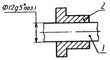 – условное обозначение поля допуска вала, например: 50 б) в виде дроби, в числителе которой указывают числовые значения предельных отклонений отверстия, а в знаменателе - числовые значения предельных отклонений вала (черт. 73б); Черт. 73 б1) в виде дроби, в числителе которой указывают условное обозначение поля допуска отверстия с указанием справа в скобках его числового значения, а в знаменателе - условное обозначение поля допуска вала с указанием справа в скобках его числового значения (черт. 73в); в) в виде записи, в которой указывают предельные отклонения только одной из сопрягаемых деталей. В этом случае необходимо пояснить, к какой детали относятся эти отклонения (черт. 74). _____________ * Размеры для справок. черт. 74 3.8. Когда для участков поверхности с одним номинальным размером назначают разные предельные отклонения, границу между ними наносят сплошной тонкой линией, а номинальный размер указывают с соответствующими предельными отклонениями для каждого участка отдельно (черт. 75). черт. 75 Через заштрихованную часть изображения линию границы между участками проводить не следует (черт. 75а). Черт. 75а 3.2-3.8. (Измененная редакция, Изм. № 2). 3.9. Если необходимо ограничить колебания размера одинаковых элементов одной детали в пределах части поля допуска (черт. 76а) или необходимо ограничить величину накопленной погрешности расстояния между повторяющимися элементами (черт. 76б), то эти данные указывают в технических требованиях. ______________ Предельные отклонения расстояния * Разность размеров 0,1 мм. между любыми несмежными зубьями ±0,1 мм. Черт. 76 3.10. Когда необходимо указать только один предельный размер (второй ограничен в сторону увеличения или уменьшения каким-либо условием), после размерного числа указывают соответственно max или min (черт. 77). Указывать предельные размеры допускается также на сборочных чертежах для зазоров, натягов, мертвых ходов и т.п., например: «Осевое смещение кулачка выдержать в пределах 0,6-1,4 мм». Черт. 77 3.11. Предельные отклонения расположения осей отверстий можно указывать двумя способами: а) позиционными допусками осей отверстий в соответствии с требованиями ГОСТ 2.308-79; б) предельными отклонениями размеров, координирующих оси (черт. 78 - 80). Черт. 78