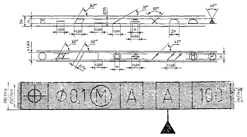 Формы и размеры знаков приведены в обязательном приложении 1. Примеры указания на чертежах допусков формы и расположения поверхностей приведены в справочном приложении 2. Примечание. Суммарные допуски формы и расположения поверхностей, для которых не установлены отдельные графические знаки, обозначают знаками составных допусков в следующей последовательности: знак допуска расположения, знак допуска формы. Например: