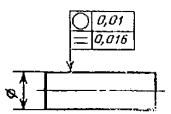 Допуск круглости вала 0,01 мм. Допуск профиля продольного сечения вала 0,016 мм. |