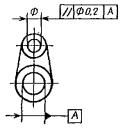 Допуск параллельности оси отверстия относительно оси отверстия А 00,2 мм. |