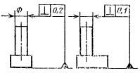 Допуск перпендикулярности оси выступа в поперечном направлении 0,2 мм, в продольном направлении 0,1 мм. База - основание |