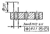 Позиционный допуск 3-х резьбовых отверстий Æ 0,1 мм (допуск зависимый) на участке, расположенном вне детали и выступающем на 30 мм от поверхности. |